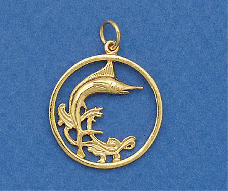 The beautiful Bahamian coin, re-sculpted by Valerie to a fuller bodied marlin. Measures 1 1/4". Also available with a blue topaz, #561 (chain not included)