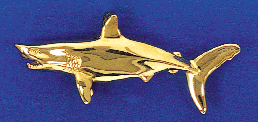 Measures 1 5/16" from nose to tail. Chain loop is hidden behind dorsal fin. This Mako Shark is available in full round and half round versions.