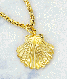 A perfect Scallop shell, with ridges carefully carved and polished. Measures 7/8" from top of loop to bottom of shell. (chain not included)