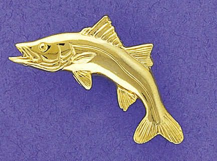 In full detail on both sides in the Full Round option, this snook measures 1 1/4" from lower lip to tail. Chain loop is hidden behind the dorsal fin.
